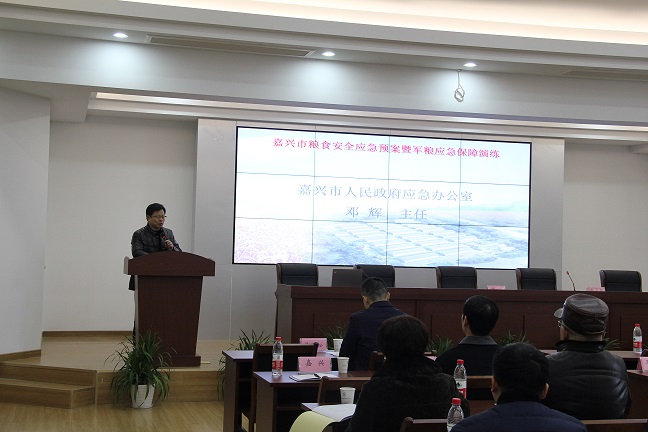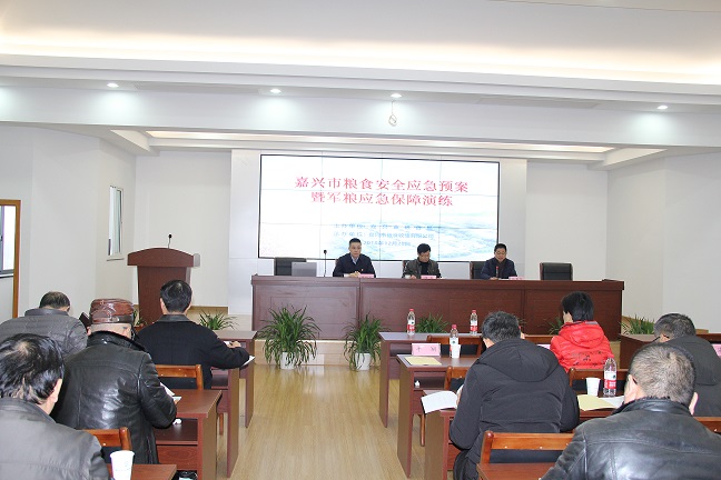 12月28日上午,由嘉興市糧食局主辦,嘉興市糧食收儲(chǔ)公司、嘉興市軍糧供應(yīng)站承辦的糧食安全應(yīng)急預(yù)案暨軍糧應(yīng)急保障演練工作在我公司中心糧庫(kù)舉行。嘉興各縣(市)分管局長(zhǎng)、調(diào)控科長(zhǎng);收儲(chǔ)(購(gòu)銷)公司負(fù)責(zé)人、軍糧供應(yīng)站負(fù)責(zé)人以及各應(yīng)急加工、運(yùn)輸企業(yè)負(fù)責(zé)人參加此次演練會(huì)議,市糧食局副局長(zhǎng)黃根松蒞臨現(xiàn)場(chǎng)并作致辭和總結(jié),市應(yīng)急辦副主任鄧輝就如何應(yīng)對(duì)突發(fā)公共事件等方面進(jìn)行專業(yè)培訓(xùn),會(huì)議由購(gòu)銷調(diào)控處處長(zhǎng)俞菊榮主持。