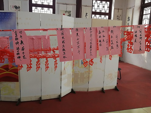 在百福弄社區(qū)文化大禮堂內(nèi),舞臺上載歌載舞,好不熱鬧,一場場精彩的文藝演出引得臺下觀眾陣陣掌聲和歡呼聲。同時,在大禮堂另一頭懸掛了一條條由剪紙“!弊纸M成的紅線,上面掛滿了一張張趣味謎面,吸引不少觀眾駐足猜謎,大家競相猜謎,互相討論,盡情享受元宵節(jié)猜燈謎的樂趣。我公司為破解燈謎的觀眾免費提供湯圓作為參與活動的小禮品,是整個活動推向新的高潮。