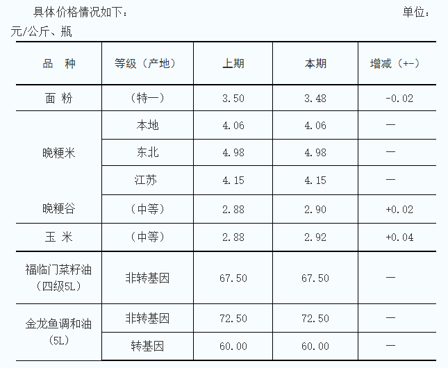 嘉興糧油價(jià)格信息