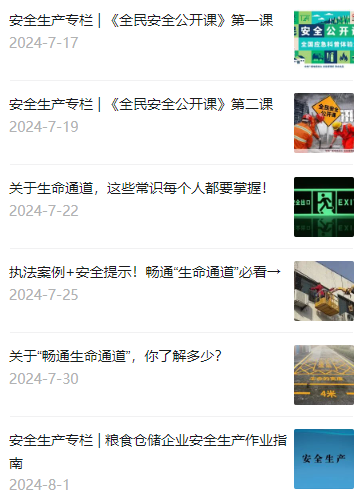 通過官方網(wǎng)站、微信公眾號(hào)等載體全方位開展“暢通生命通道、避險(xiǎn)逃生要點(diǎn)、糧食倉儲(chǔ)企業(yè)安全生產(chǎn)作業(yè)指南”等內(nèi)容的宣貫,營造濃厚的“安全生產(chǎn)月”氛圍,牢固樹立“安全生產(chǎn)無小事,安全責(zé)任大于天”的意識(shí)。